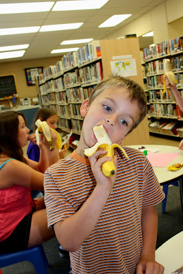And then for snacks I handed out some cooked banana cookies, called bear paws, that my brother found at No Frills! They were delicious! And I also snagged some bananas for the kids to munch on!
